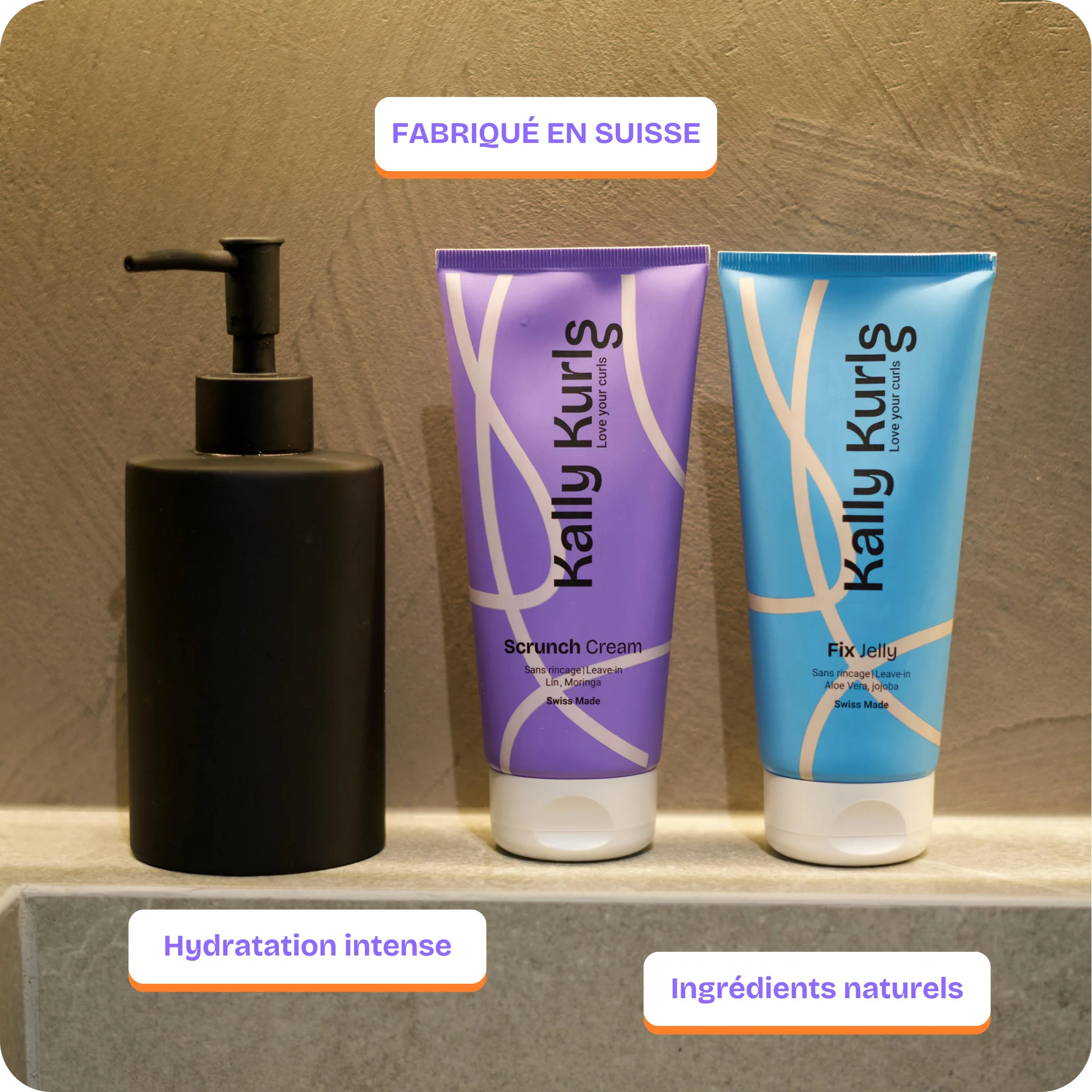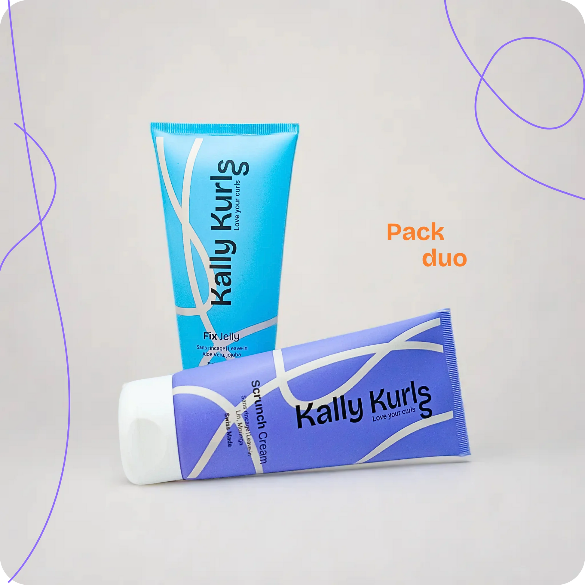 Offrez à vos cheveux bouclés une routine complète avec le Pack KallyKurls, combinant la Scrunch Cream et la Fix Jelly, deux soins spécialement conçus pour hydrater, définir et sublimer vos boucles tout en les protégeant.